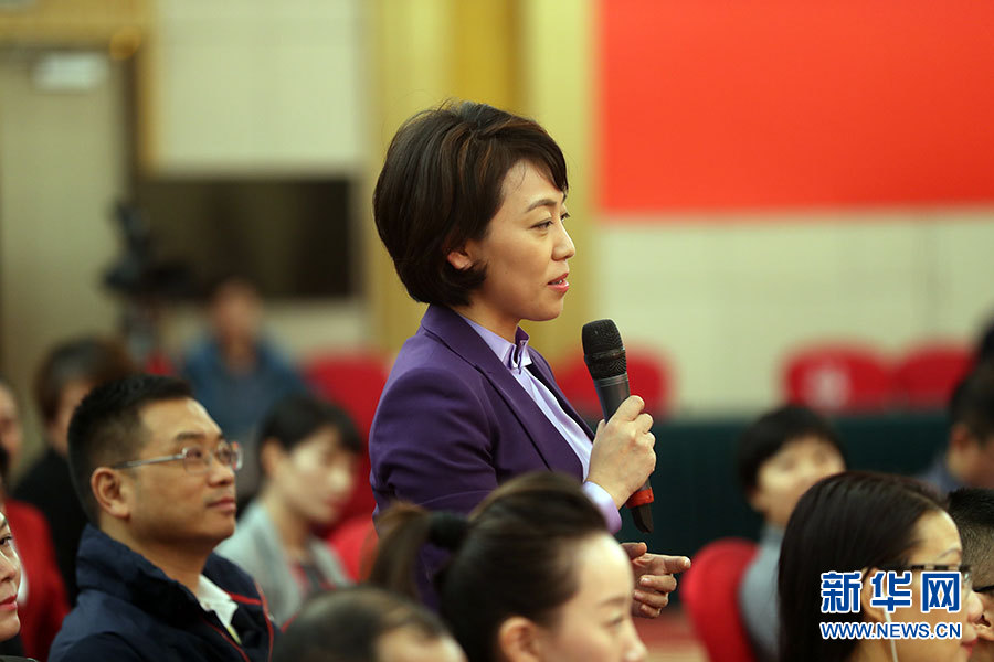 10月21日,十九大新聞中心舉辦集體采訪活動,主題為“農(nóng)業(yè)科技創(chuàng)新”。圖為中央電視臺記者提問。新華網(wǎng) 郝廣鵬攝