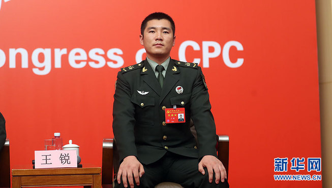 10月22日,十九大新聞中心在梅地亞中心二層新聞發(fā)布廳舉辦集體采訪活動,主題為“中國特色強(qiáng)軍之路邁出堅定步伐”。圖為陸軍第74集團(tuán)軍某合成旅兩棲裝甲突擊車車長王銳。新華網(wǎng) 郝廣鵬攝