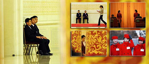 兩會·視覺印象:安保人員黑色制服很嚴(yán)肅