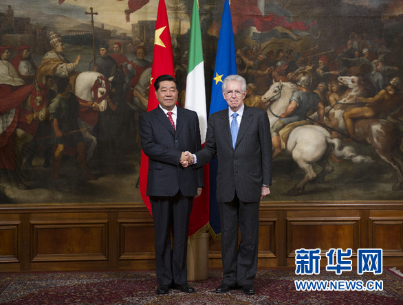 賈慶林會(huì)見意大利總理蒙蒂