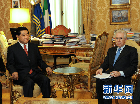 賈慶林會(huì)見意大利總理蒙蒂