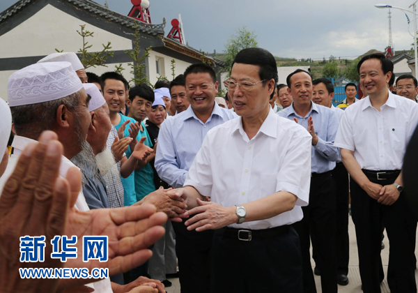 ??? 7月2日至5日,中共中央政治局常委、國(guó)務(wù)院副總理張高麗赴寧夏、甘肅調(diào)研。這是7月2日,張高麗來到寧夏固原市的一處移民新村,看望少數(shù)民族群眾,了解搬遷移民生活狀況。 新華社記者劉衛(wèi)兵攝