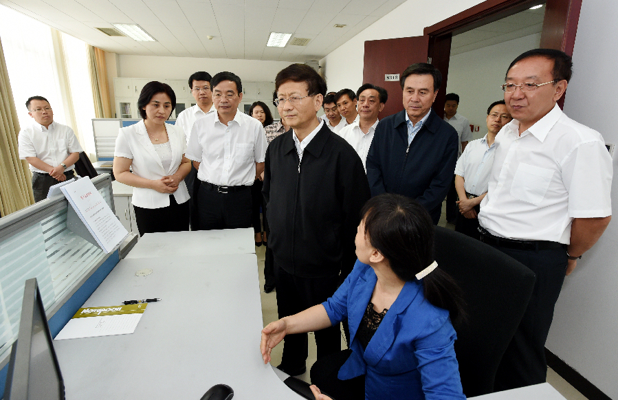 5月27日,中共中央政治局委員、中央政法委書記孟建柱在國家信訪局調(diào)研。圖為孟建柱查看國家信訪信息系統(tǒng)運(yùn)行情況。