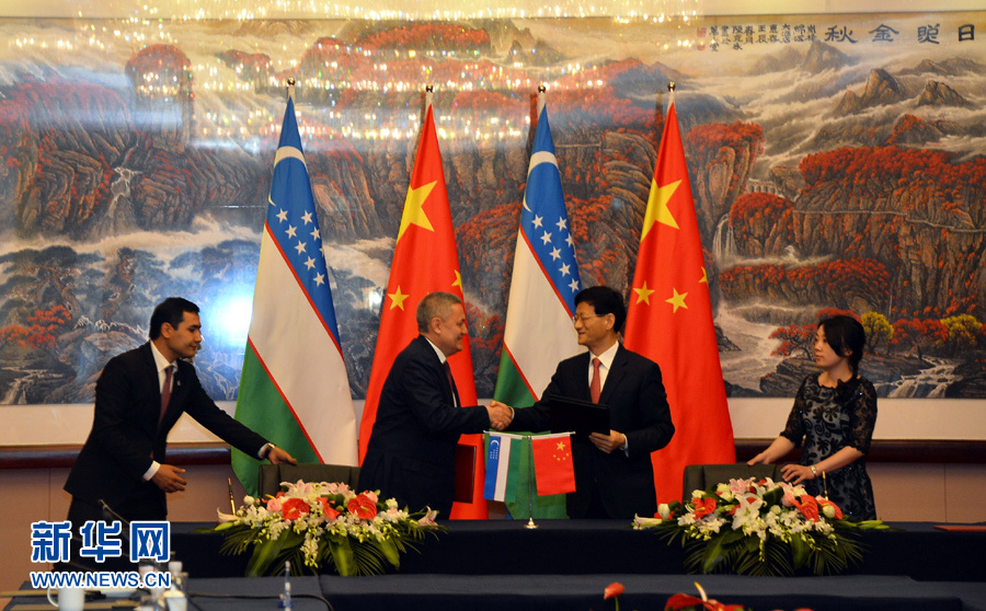 6月15日,中共中央政治局委員、中央政法委書記、中國和烏茲別克斯坦政府間合作委員會中方主席孟建柱與委員會烏方主席、烏茲別克斯坦第一副總理阿齊莫夫在山東省日照市共同主持召開中烏政府間合作委員會第三次會議。這是會議結(jié)束后,孟建柱和阿齊莫夫共同簽署《會議紀要》。新華社記者范長國攝