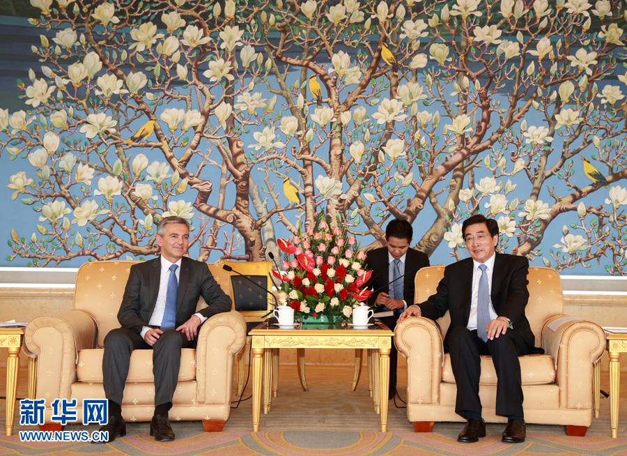 ??? 7月14日,中共中央政治局委員、北京市委書記郭金龍?jiān)诒本?huì)見馬耳他國民黨領(lǐng)袖布蘇蒂爾。 新華社記者 丁海濤 攝