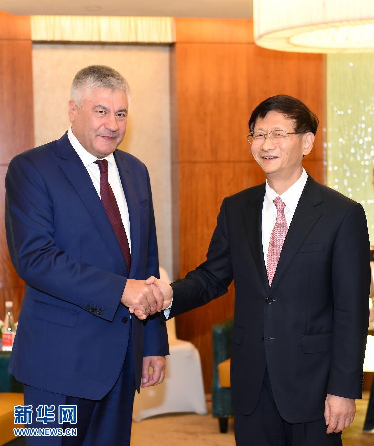??? 10月23日,中共中央政治局委員、中央政法委書記孟建柱在北京會(huì)見出席“安全促發(fā)展”中國(guó)東盟執(zhí)法安全合作部長(zhǎng)級(jí)會(huì)議的俄羅斯內(nèi)務(wù)部部長(zhǎng)科洛科利采夫。新華社記者張領(lǐng)攝