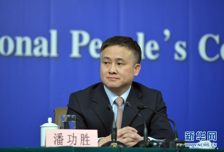 ????十二屆全國人大三次會議新聞中心于3月12日在梅地亞中心多功能廳舉行記者會,邀請中國人民銀行行長周小川,中國人民銀行副行長、國家外匯管理局局長易綱,中國人民銀行副行長潘功勝,絲路基金有限責任公司董事長金琦就金融改革與發(fā)展回答中外記者提問。圖為中國人民銀行副行長潘功勝回答記者提問。新華網(wǎng)/中國政府網(wǎng) 郭小天 攝
