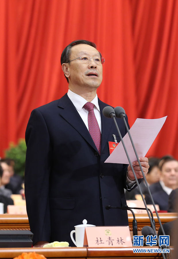 ??? 3月3日,中國人民政治協(xié)商會議第十二屆全國委員會第四次會議在北京人民大會堂開幕。杜青林主持開幕會。??新華社記者 龐興雷 攝