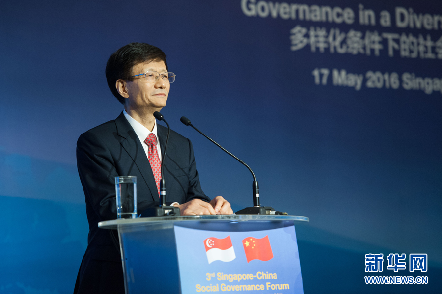 5月17日,中共中央政治局委員、中央政法委書記、中央綜治委主任孟建柱出席在新加坡舉行的第三屆中新社會(huì)治理高層論壇。新華社發(fā)(王應(yīng)耀攝)