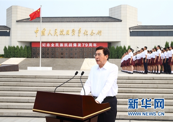 7月7日,紀念全民族抗戰(zhàn)爆發(fā)79周年儀式在北京中國人民抗日戰(zhàn)爭紀念館舉行。中共中央政治局委員、北京市委書記郭金龍主持紀念儀式。新華社記者丁海濤攝