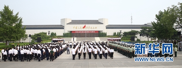中共中央政治局委員、北京市委書記郭金龍主持紀念儀式。中央有關部門、北京市和中央軍委政治工作部負責同志,參加過抗日戰(zhàn)爭的老戰(zhàn)士代表、抗戰(zhàn)將領親屬代表,以及“時代楷模”代表、機關干部和群眾代表、部隊代表、學生代表約500人出席儀式,并參觀了在中國人民抗日戰(zhàn)爭紀念館展出的“民族先鋒 中流砥柱——中國共產(chǎn)黨抗戰(zhàn)英烈事跡展”。