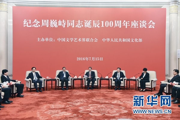 7月15日,紀(jì)念周巍峙同志誕辰100周年座談會在北京舉行。中共中央政治局委員、中央書記處書記、中宣部部長劉奇葆出席座談會并講話。 新華社記者 高潔 攝