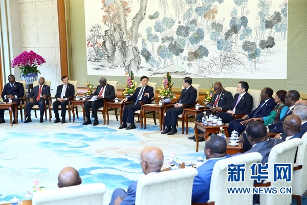 7月28日,國家副主席李源潮在北京集體會見出席中非合作論壇約翰內(nèi)斯堡峰會成果落實協(xié)調(diào)人會議的非方代表團團長。 新華社記者 丁海濤 攝