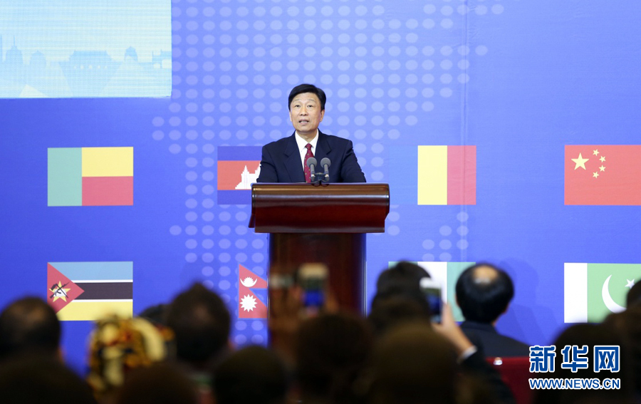 ??? 7月28日,首屆亞非青年聯(lián)歡節(jié)在北京人民大會(huì)堂開幕,國(guó)家副主席李源潮出席并致辭。新華社記者丁林?jǐn)z