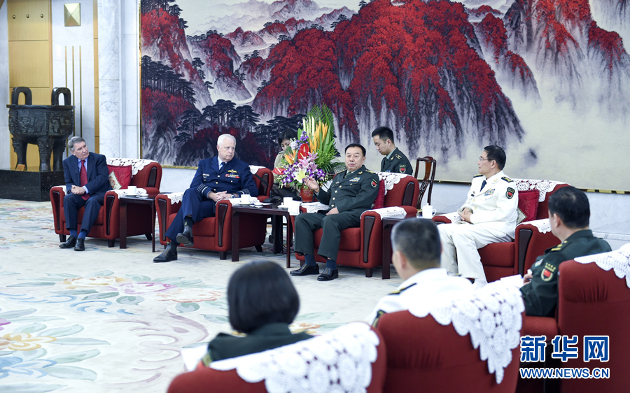10月12日,中央軍委副主席范長龍在北京會見來華參加中澳第19次防務戰(zhàn)略磋商的澳大利亞國防軍司令賓斯金和國防部秘書長理查森。新華社記者 張領 攝