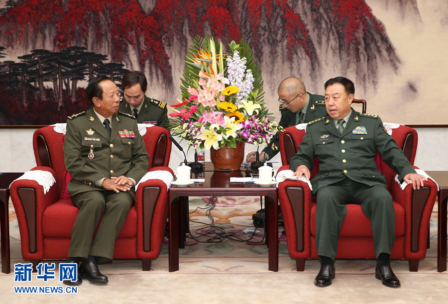 ??? 10月13日,中央軍委副主席范長龍?jiān)诒本娂砥艺鯂笔紫嗉鎳来蟪嫉习唷?新華社記者 馬占成 攝