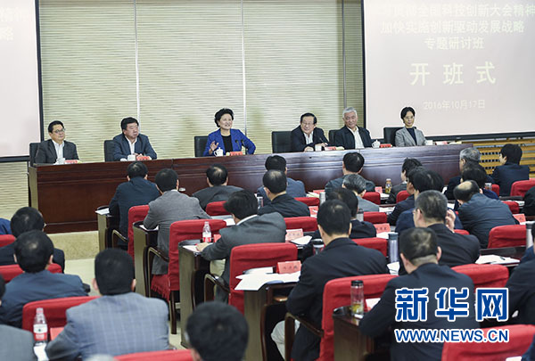 10月17日,中央組織部、中央黨校、科技部聯(lián)合舉辦的省部級干部“學習貫徹全國科技創(chuàng)新大會精神加快實施創(chuàng)新驅動發(fā)展戰(zhàn)略”專題研討班在北京開班。中共中央政治局委員、國務院副總理劉延東出席開班式并講話。新華社記者 張領 攝