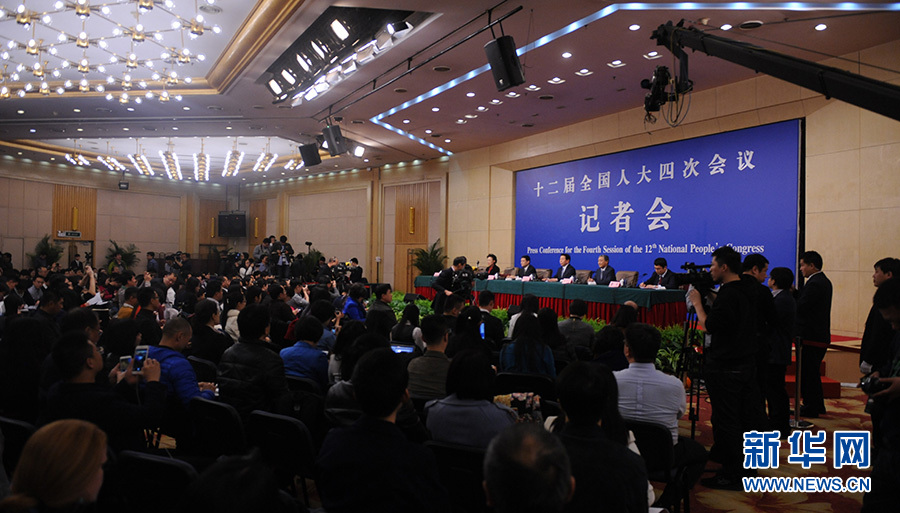 ?????十二屆全國(guó)人大四次會(huì)議新聞中心于3月12日(星期六)14時(shí)30分在梅地亞中心多功能廳舉行記者會(huì),邀請(qǐng)國(guó)務(wù)院國(guó)有資產(chǎn)監(jiān)督管理委員會(huì)主任肖亞慶、副主任張喜武、副主任黃丹華和副秘書長(zhǎng)、新聞發(fā)言人彭華崗就“國(guó)企改革”的相關(guān)問(wèn)題回答中外記者的提問(wèn)。圖為記者會(huì)現(xiàn)場(chǎng)。新華網(wǎng)/中國(guó)政府網(wǎng)? 陳杰? 攝