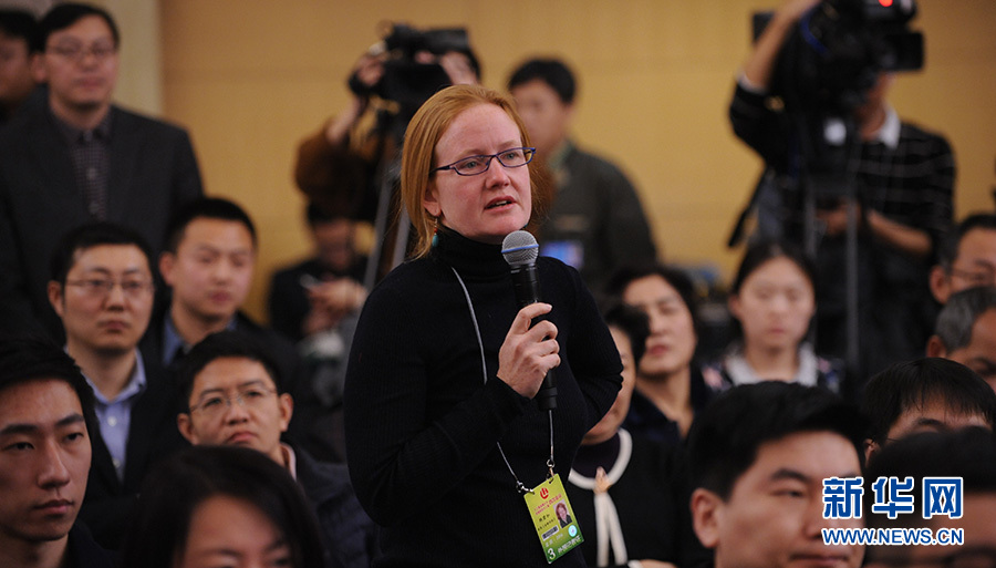 ?????十二屆全國人大四次會議新聞中心于3月12日(星期六)14時30分在梅地亞中心多功能廳舉行記者會,邀請國務院國有資產監(jiān)督管理委員會主任肖亞慶、副主任張喜武、副主任黃丹華和副秘書長、新聞發(fā)言人彭華崗就“國企改革”的相關問題回答中外記者的提問。圖為金融時報記者提問。新華網/中國政府網 陳杰 攝