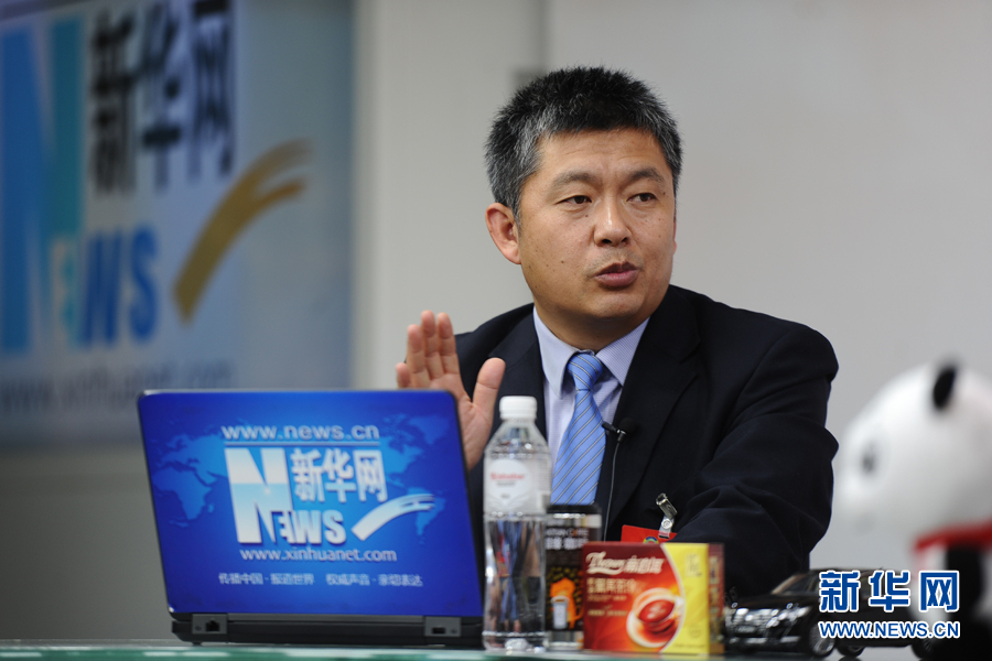 ??? 2016年3月12日,全國政協(xié)委員,內(nèi)蒙古蒙草公司董事長兼總經(jīng)理王召明做客新華網(wǎng)兩會訪談。圖為王召明在訪談現(xiàn)場。新華網(wǎng) 賈海元 攝