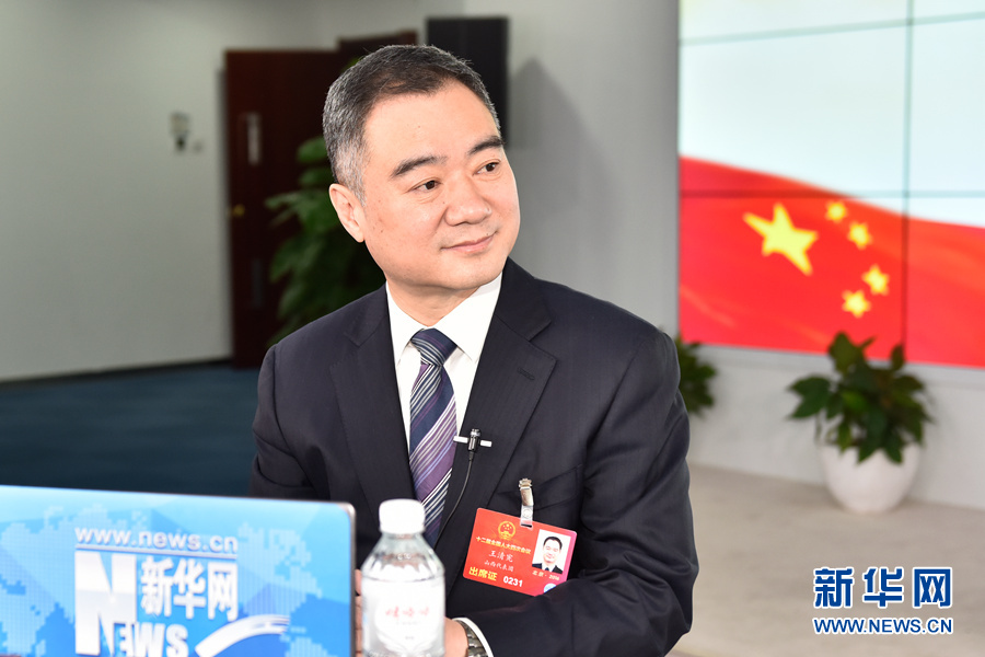 3月12日,全國人大代表,運城市市長王清憲做客新華網(wǎng)2016全國兩會特別訪談,與新華網(wǎng)網(wǎng)友在線交流。圖為王清憲在訪談現(xiàn)場。新華網(wǎng) 付宇鵬 攝