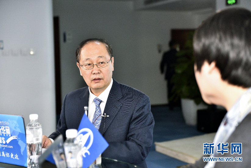 2016年3月13日,全國政協(xié)委員,中國航天科工集團公司副總經理魏毅寅做客新華網兩會訪談直播間。圖為魏毅寅在回答主持人的提問。新華網 付宇鵬 攝