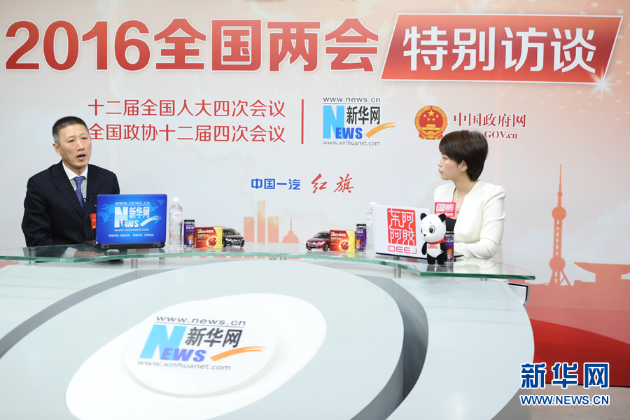 ??? 2016年3月13日,全國人大代表,煙臺張?jiān)F咸厌劸乒煞萦邢薰究偨?jīng)理周洪江做客新華網(wǎng)兩會訪談。圖為周洪江在訪談現(xiàn)場。新華網(wǎng) 盧志佳 攝