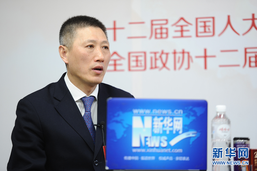 ??? 2016年3月13日,全國(guó)人大代表,煙臺(tái)張?jiān)F咸厌劸乒煞萦邢薰究偨?jīng)理周洪江做客新華網(wǎng)兩會(huì)訪談。圖為周洪江在訪談現(xiàn)場(chǎng)。新華網(wǎng) 盧志佳 攝