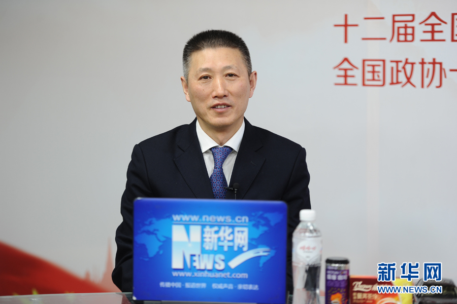 ??? 2016年3月13日,全國(guó)人大代表,煙臺(tái)張?jiān)F咸厌劸乒煞萦邢薰究偨?jīng)理周洪江做客新華網(wǎng)兩會(huì)訪談。圖為周洪江在訪談現(xiàn)場(chǎng)。新華網(wǎng) 盧志佳 攝