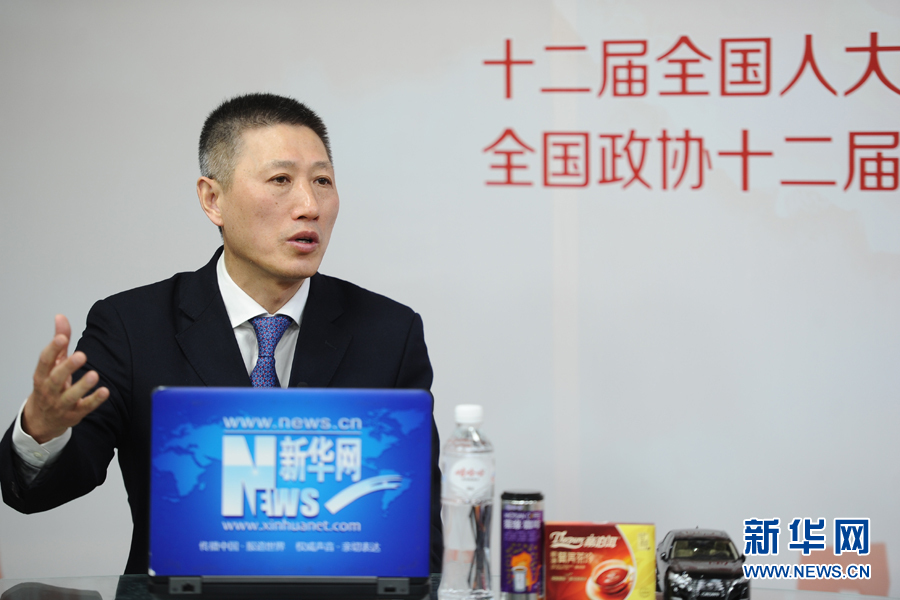 ??? 2016年3月13日,全國人大代表,煙臺(tái)張?jiān)F咸厌劸乒煞萦邢薰究偨?jīng)理周洪江做客新華網(wǎng)兩會(huì)訪談。圖為周洪江在訪談現(xiàn)場。新華網(wǎng) 盧志佳 攝
