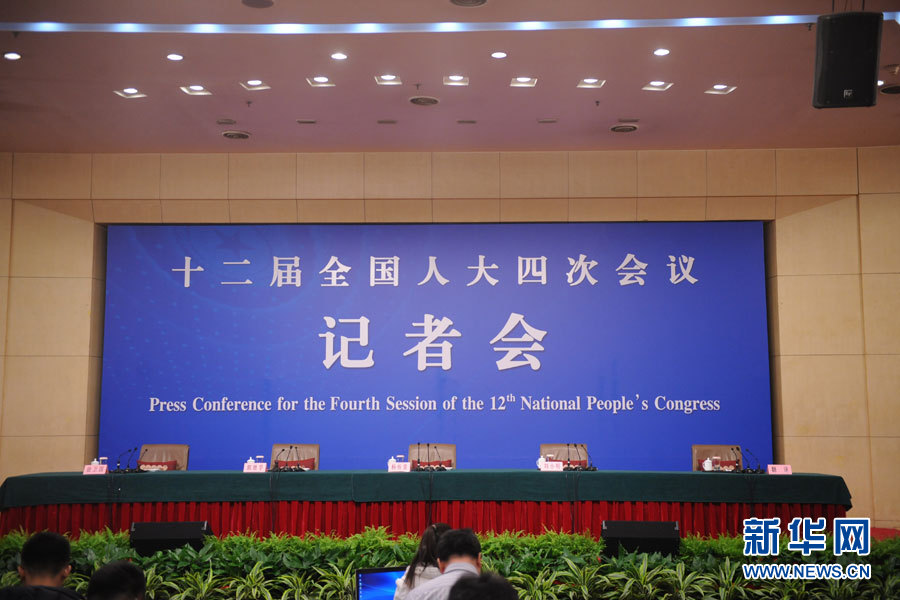 十二屆全國人大四次會議新聞中心于3月14日(星期一)10時(shí)在梅地亞中心多功能廳舉行記者會,邀請交通運(yùn)輸部部長楊傳堂、交通運(yùn)輸部運(yùn)輸服務(wù)司司長劉小明、北京交通發(fā)展研究中心主任郭繼孚就“深化出租汽車改革與發(fā)展”的相關(guān)問題回答中外記者的提問。圖為記者會現(xiàn)場,記者會即將開始。新華網(wǎng)/中國政府網(wǎng) 陳杰 攝