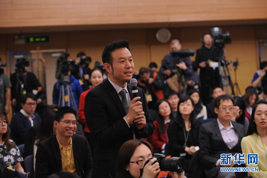 十二屆全國人大四次會議新聞中心于3月14日(星期一)10時在梅地亞中心多功能廳舉行記者會,邀請交通運(yùn)輸部部長楊傳堂、交通運(yùn)輸部運(yùn)輸服務(wù)司司長劉小明、北京交通發(fā)展研究中心主任郭繼孚就“深化出租汽車改革與發(fā)展”的相關(guān)問題回答中外記者的提問。圖為中央電視臺、央視網(wǎng)、央視新聞客戶端記者提問。新華網(wǎng)/中國政府網(wǎng) 陳杰 攝