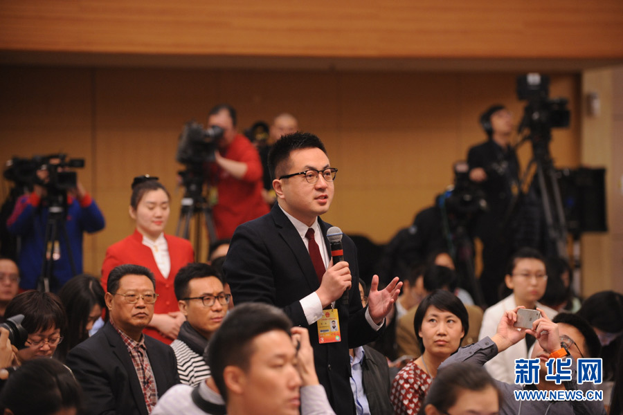 十二屆全國人大四次會議新聞中心于3月14日(星期一)10時在梅地亞中心多功能廳舉行記者會,邀請交通運輸部部長楊傳堂、交通運輸部運輸服務司司長劉小明、北京交通發(fā)展研究中心主任郭繼孚就“深化出租汽車改革與發(fā)展”的相關問題回答中外記者的提問。圖為中國網(wǎng)記者提問。新華網(wǎng)/中國政府網(wǎng) 陳杰 攝