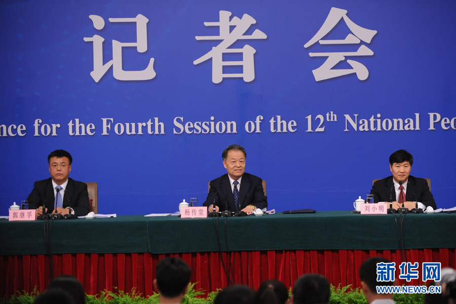 十二屆全國(guó)人大四次會(huì)議新聞中心于3月14日(星期一)10時(shí)在梅地亞中心多功能廳舉行記者會(huì),邀請(qǐng)交通運(yùn)輸部部長(zhǎng)楊傳堂、交通運(yùn)輸部運(yùn)輸服務(wù)司司長(zhǎng)劉小明、北京交通發(fā)展研究中心主任郭繼孚就“深化出租汽車改革與發(fā)展”的相關(guān)問(wèn)題回答中外記者的提問(wèn)。圖為記者會(huì)主席臺(tái)。新華網(wǎng)/中國(guó)政府網(wǎng) 陳杰 攝