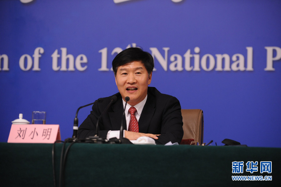 十二屆全國人大四次會議新聞中心于3月14日(星期一)10時在梅地亞中心多功能廳舉行記者會,邀請交通運(yùn)輸部部長楊傳堂、交通運(yùn)輸部運(yùn)輸服務(wù)司司長劉小明、北京交通發(fā)展研究中心主任郭繼孚就“深化出租汽車改革與發(fā)展”的相關(guān)問題回答中外記者的提問。圖為交通運(yùn)輸部運(yùn)輸服務(wù)司司長劉小明答記者問。新華網(wǎng)/中國政府網(wǎng) 陳杰 攝