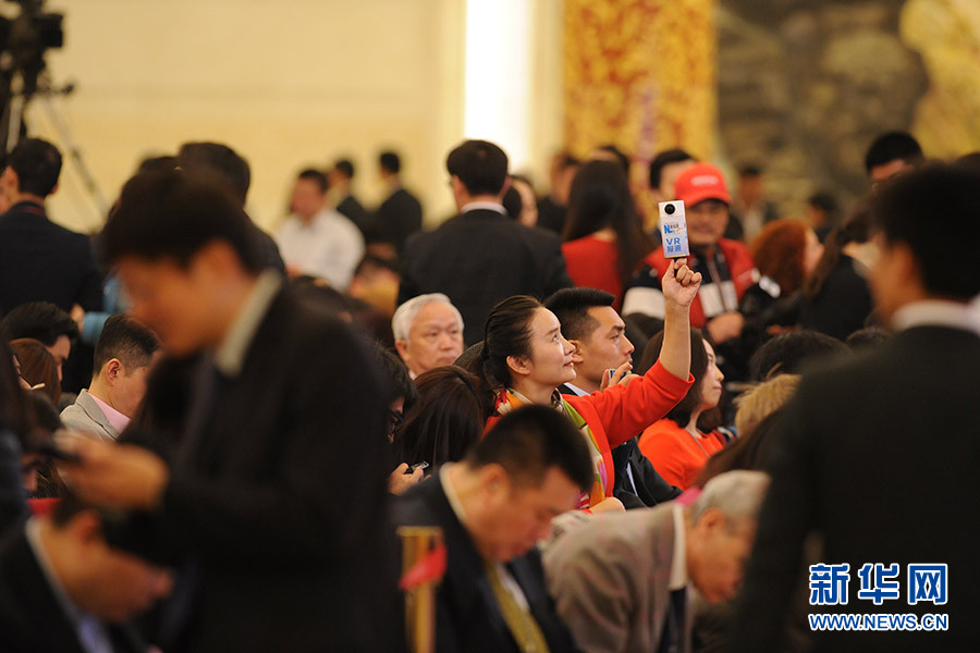 3月16日上午,國務(wù)院總理李克強(qiáng)在人民大會堂三樓金色大廳會見采訪十二屆全國人大四次會議的中外記者并回答記者提出的問題。圖為新華網(wǎng)VR報(bào)道總理記者會。新華網(wǎng)/中國政府網(wǎng) 陳杰攝