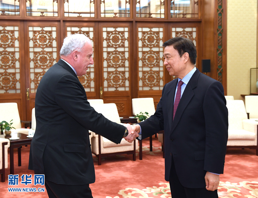 ??? 4月14日,國家副主席李源潮在北京會見巴勒斯坦外長馬勒基。新華社記者饒愛民攝