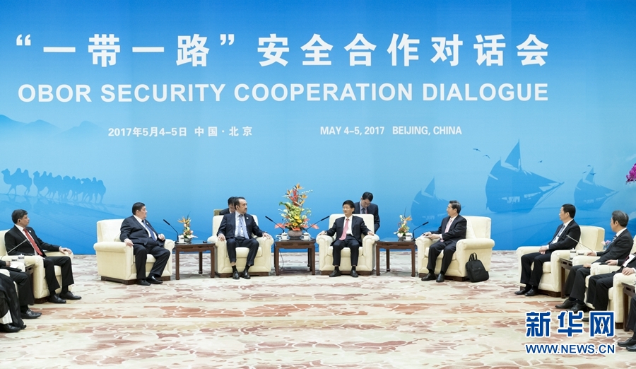 5月4日,中國(guó)國(guó)家安全部與20多個(gè)國(guó)家安全部門(mén)“一帶一路”安全合作對(duì)話(huà)會(huì)在北京舉行。中共中央政治局委員、中央政法委書(shū)記孟建柱會(huì)見(jiàn)與會(huì)各國(guó)代表團(tuán)團(tuán)長(zhǎng)。新華社記者 丁海濤 攝