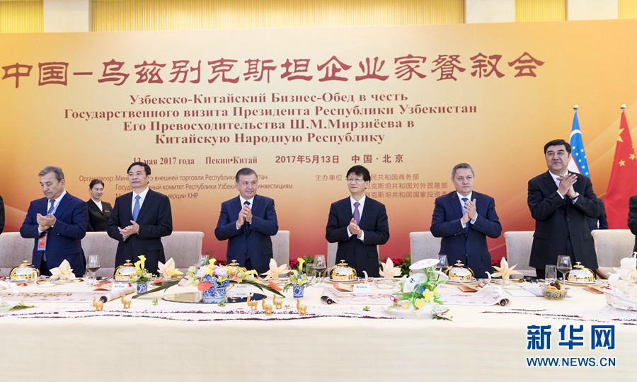 5月13日,中共中央政治局委員、中央政法委書記、中烏政府間合作委員會中方主席孟建柱在北京同烏茲別克斯坦總統(tǒng)米爾濟約耶夫共同出席中烏企業(yè)家餐敘會并致辭。新華社記者丁海濤 攝