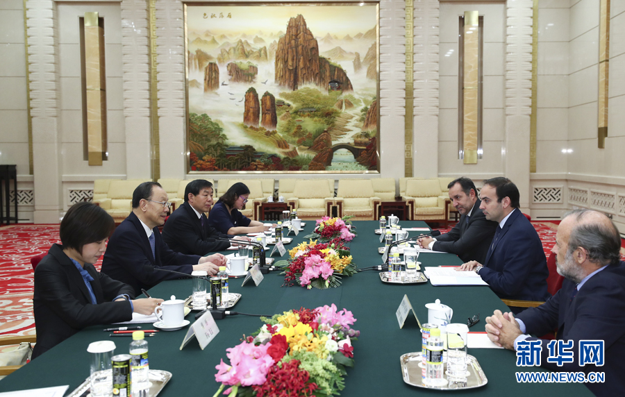 5月16日,中共中央書記處書記、全國政協(xié)副主席杜青林在北京會見阿根廷共和國方案黨總書記金塔納。 新華社記者 謝環(huán)馳 攝