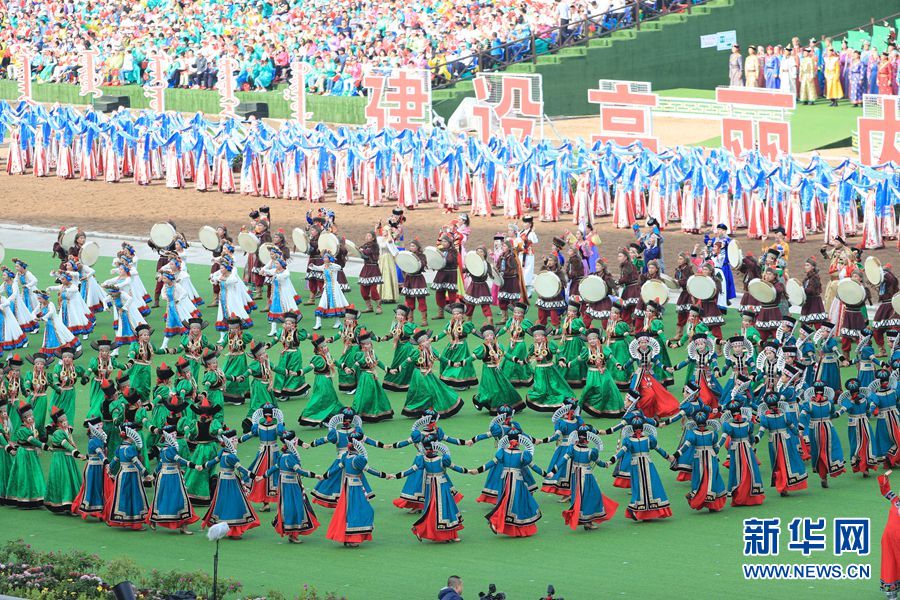 8月8日,內(nèi)蒙古自治區(qū)成立70周年慶祝大會(huì)在呼和塔拉內(nèi)蒙古少數(shù)民族群眾文化體育運(yùn)動(dòng)中心舉行。圖為群眾行進(jìn)表演。新華網(wǎng)記者 陳杰 攝
