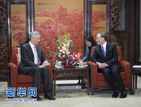 9月20日,中共中央政治局常委、中央紀委書記王岐山在北京會見新加坡總理李顯龍。 新華社記者 李濤 攝