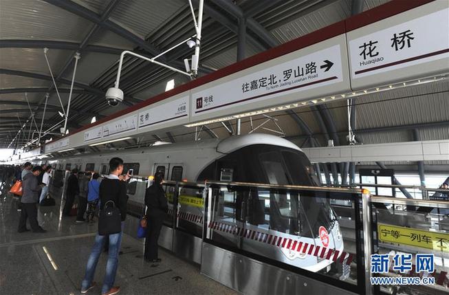2013年10月16日,上海地鐵11號(hào)線北段延伸工程花橋段(上海安亭站至江蘇昆山花橋站)開通試運(yùn)營(yíng)。這是乘客在江蘇昆山花橋站站臺(tái)候車。新華社記者 劉巍巍 攝