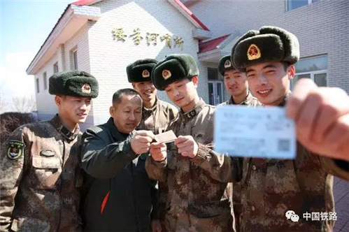 拿到春運(yùn)車票后,老張趕緊把票送到哨所戰(zhàn)士的手中。(圖片來源:中國(guó)鐵路微信公號(hào))