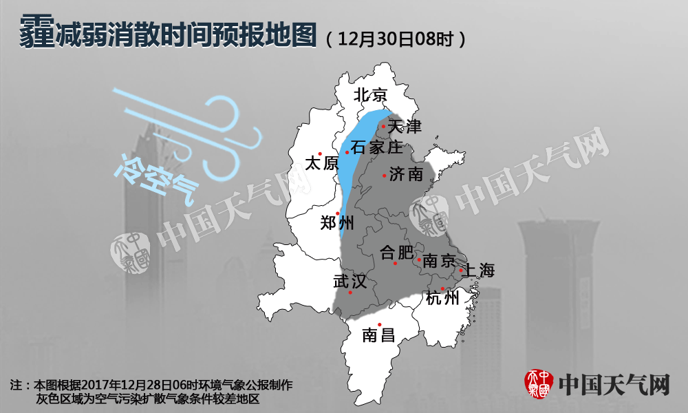 ??本次霾(2017年12月28日-30日)過程減弱消散預(yù)報圖。(稿件內(nèi)圖片來源:新華社、中國天氣網(wǎng)、視覺中國)