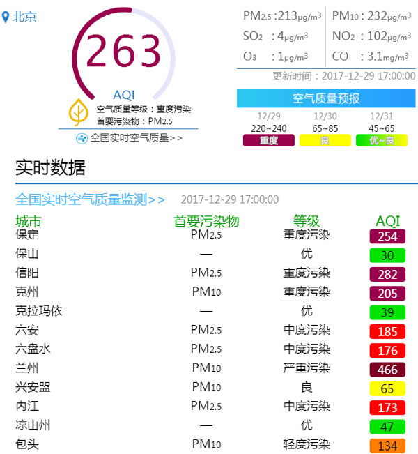 ??? 12月28日,華北黃淮等地迎來霾天氣過程。晚18時,北京市發(fā)布空氣重污染藍(lán)色預(yù)警,污染范圍為2017年冬季之最。