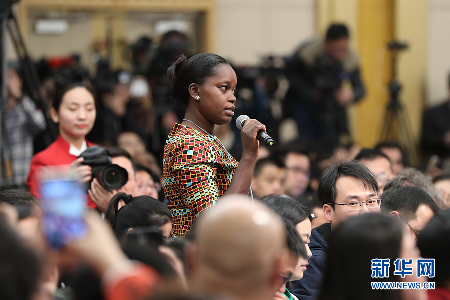 十二屆全國人大五次會議新聞中心于3月8日(星期三)10時在梅地亞中心多功能廳舉行記者會,邀請外交部部長王毅就“中國的外交政策和對外關(guān)系”的相關(guān)問題回答中外記者的提問。圖為坦桑尼亞標(biāo)準(zhǔn)報業(yè)集團(tuán)記者提問。新華網(wǎng)/中國政府網(wǎng) 翟子赫 攝