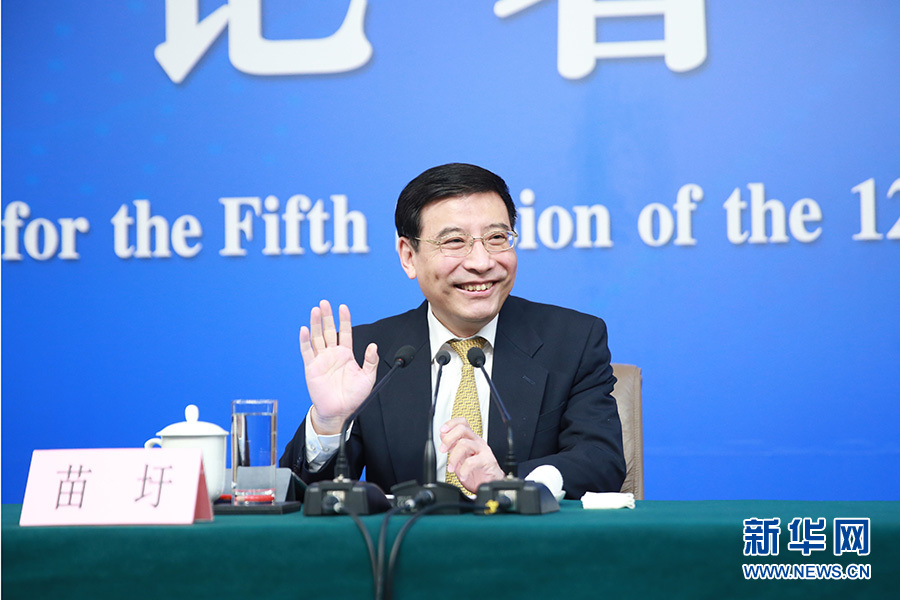 3月11日,十二屆全國(guó)人大五次會(huì)議新聞中心舉行記者會(huì),邀請(qǐng)工業(yè)和信息化部部長(zhǎng)苗圩、副部長(zhǎng)辛國(guó)斌和總工程師、新聞發(fā)言人張峰就“推進(jìn)實(shí)施‘中國(guó)制造2025’”的相關(guān)問(wèn)題回答中外記者的提問(wèn)。圖為工業(yè)和信息化部部長(zhǎng)苗圩。新華網(wǎng)/中國(guó)政府網(wǎng)?翟子赫 攝