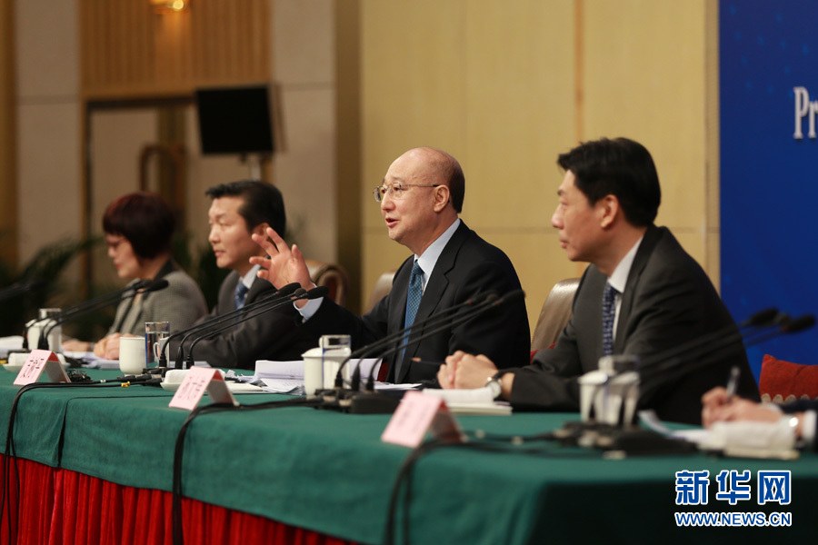 3月14日,十二屆全國(guó)人大五次會(huì)議新聞中心舉行記者會(huì),邀請(qǐng)國(guó)家質(zhì)檢總局局長(zhǎng)支樹平、副局長(zhǎng)兼國(guó)家認(rèn)證認(rèn)可監(jiān)督管理委員會(huì)主任孫大偉、國(guó)家標(biāo)準(zhǔn)化管理委員會(huì)主任田世宏就“質(zhì)量提升”的相關(guān)問題回答中外記者的提問。圖為支樹平回答記者提問。新華網(wǎng)/中國(guó)政府網(wǎng) 傅義洲 攝