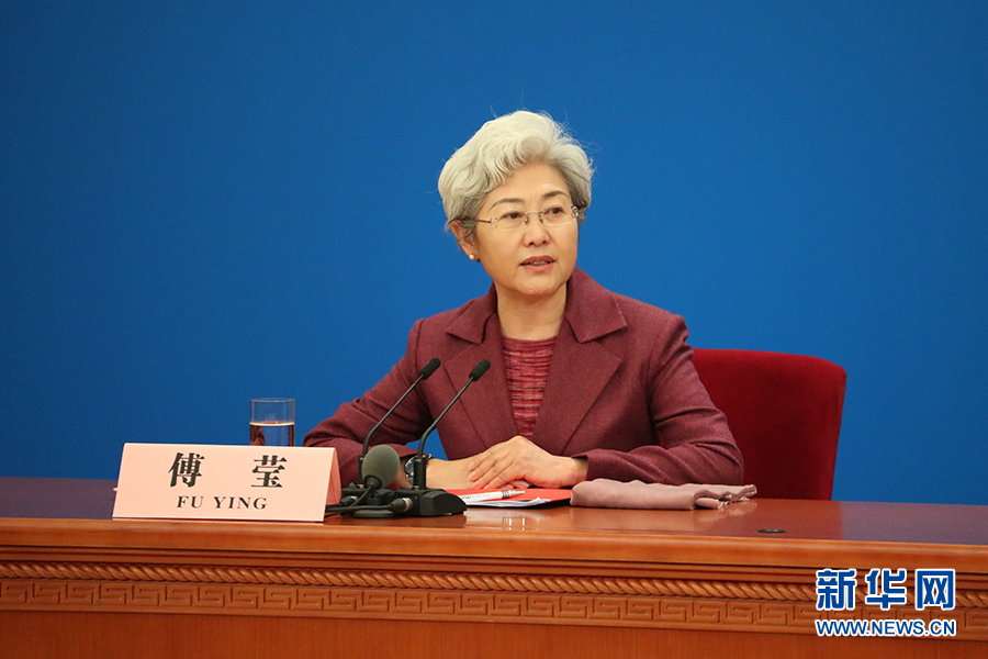 3月15日上午,國務(wù)院總理李克強(qiáng)在人民大會(huì)堂三樓金色大廳會(huì)見采訪十二屆全國人大五次會(huì)議的中外記者并回答記者提出的問題。圖為記者會(huì)主持人傅瑩。新華網(wǎng)/中國政府網(wǎng) 翟子赫 攝